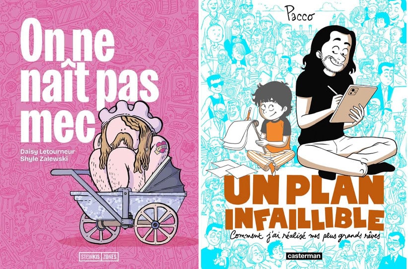 Lire un livre. Quelle drôle d’idée. Maintenant que j’ai un enfant, le concept de se poser dans un fauteuil pour bouquiner 45mn sans interruption me paraît une douce utopie. Ça reviendra, mais pour le moment ma pile à lire grossit démesurément. Alors je ne les ai pas encore lues, mais j’ai reçu deux BD qui m’ont fait bien plaisir : « On ne naît pas mec » de Daisy Letourneur et Shyle, et « Un plan infaillible » de Pacco. J’ai très hâte de découvrir tout ça !