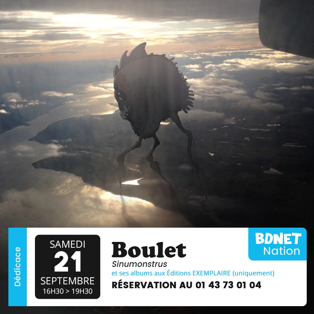“Le samedi 21 septembre de 16h30 à 19h30, Boulet sera des nôtres pour dédicacer Sinumonstrus chez les éditions Exemplaire ! Appelez nous pour réserver un créneau !