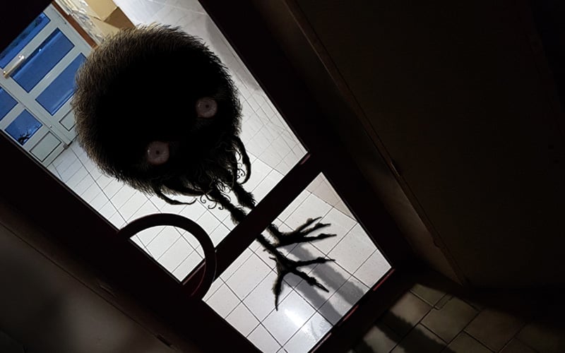 Une petite boule de poils montée sur des pattes d’oiseau vous observe dans le couloir d’un immeuble.