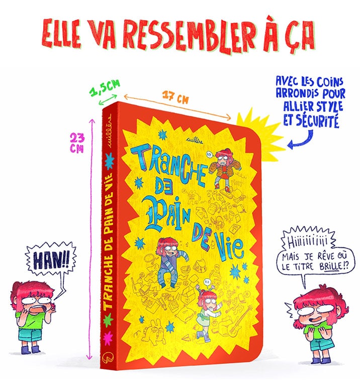 TRANCHE DE PAIN DE VIE de Cuillère. Ces BD me font beaucoup rire depuis longtemps sur Instagram, et il reste 12 jours pour financer au maximum le projet ! Ce sont de petites histoires autobiographiques drôles et trash, racontées avec un graphisme cartoon-crétin-mignon, c’est 100 % ma came.