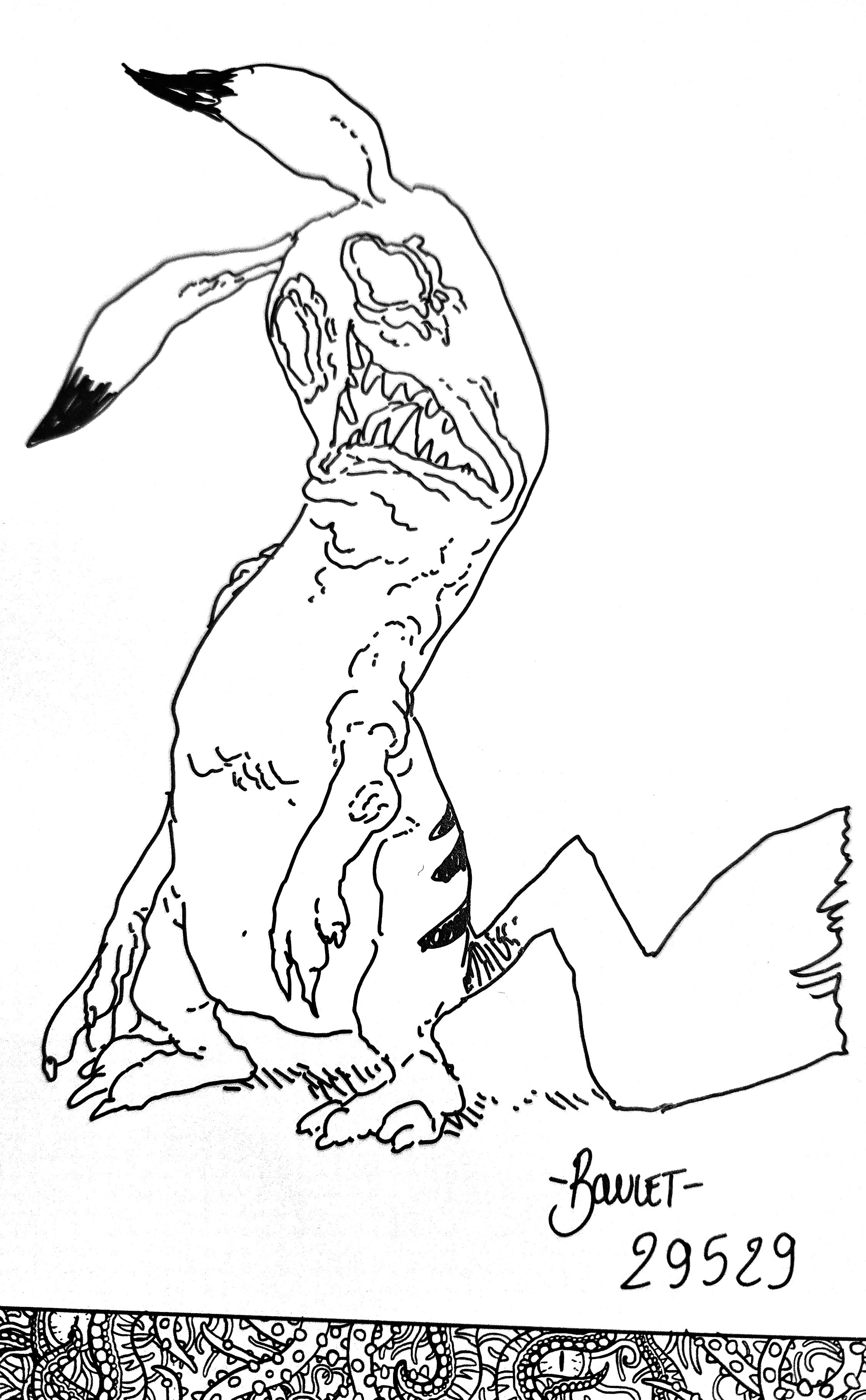 Une dédicace sur Sinumonstrus: un Pikachu difforme représentant à peu près mon état mental actuel.